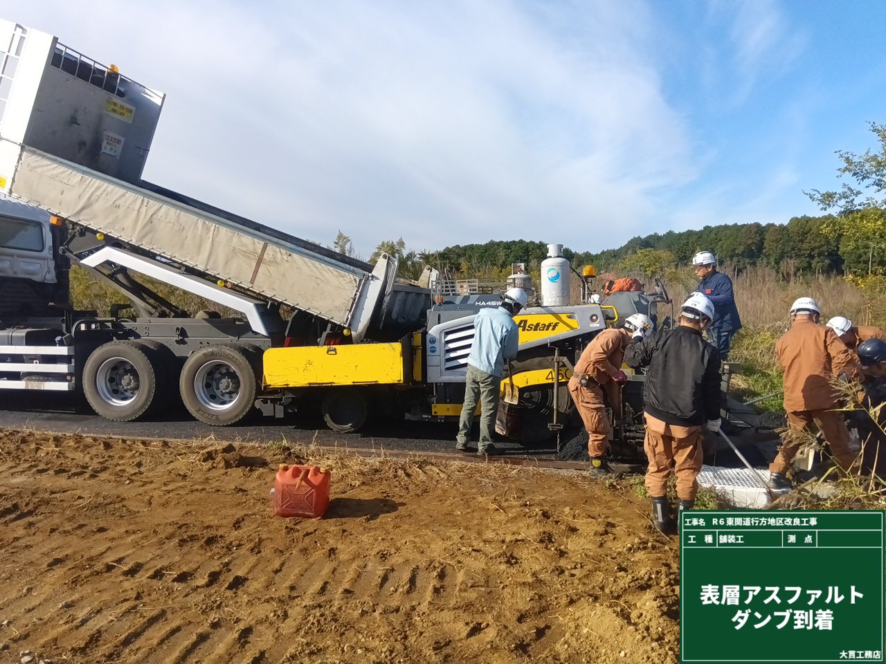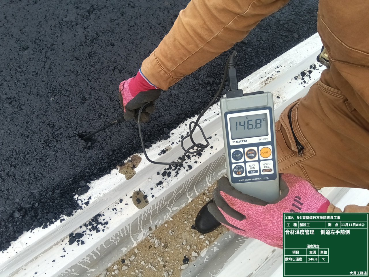 敷均し直後は約146℃と、秋風の中でも“灼熱”