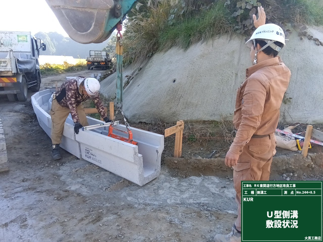 上段と下段、どちらもU型側溝を敷設している写真ですが、工程が違いますね!