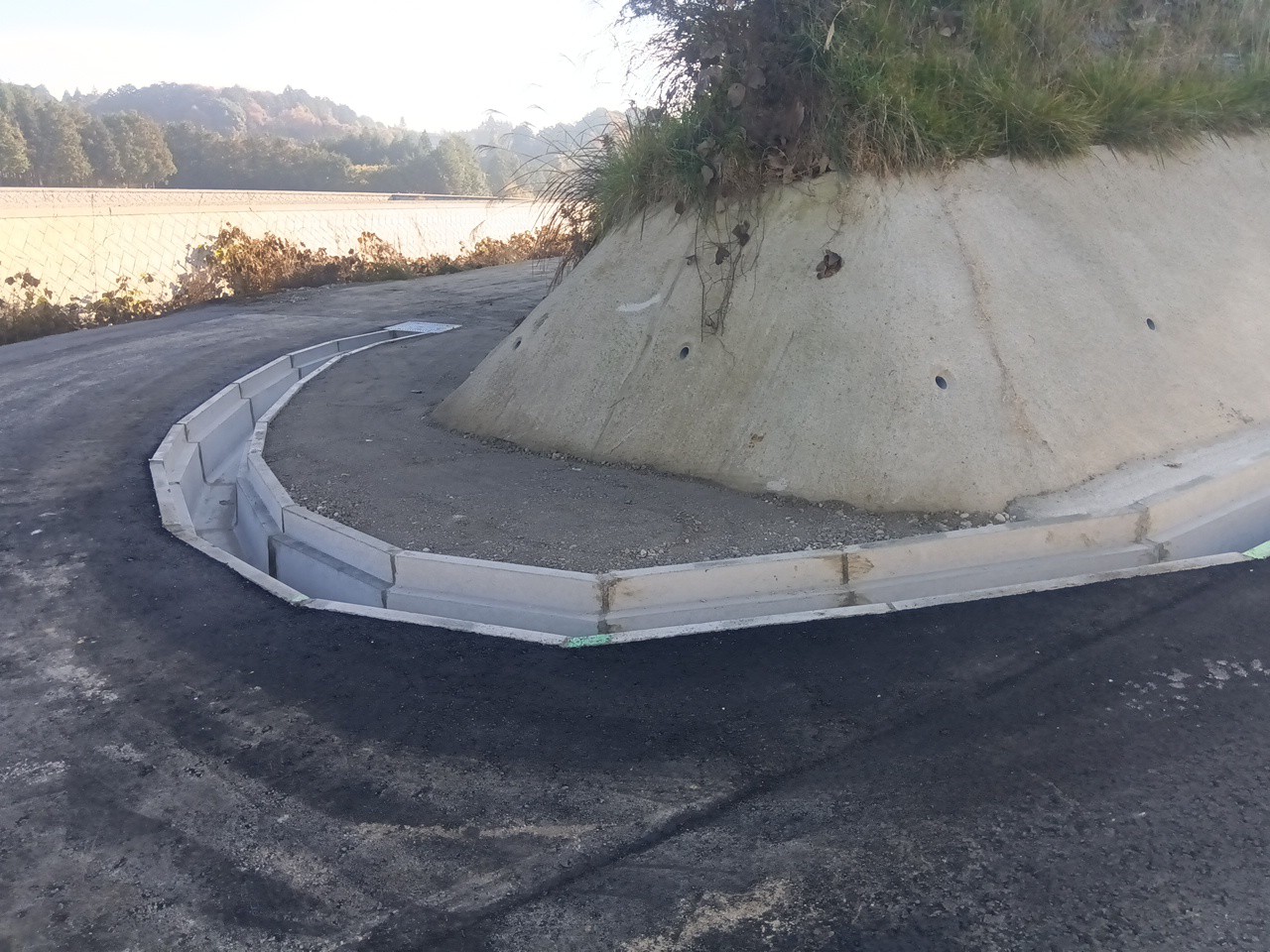 このカーブに真っ直ぐなU字溝を並べていくには、ベテランの職人の技が必要不可欠!!