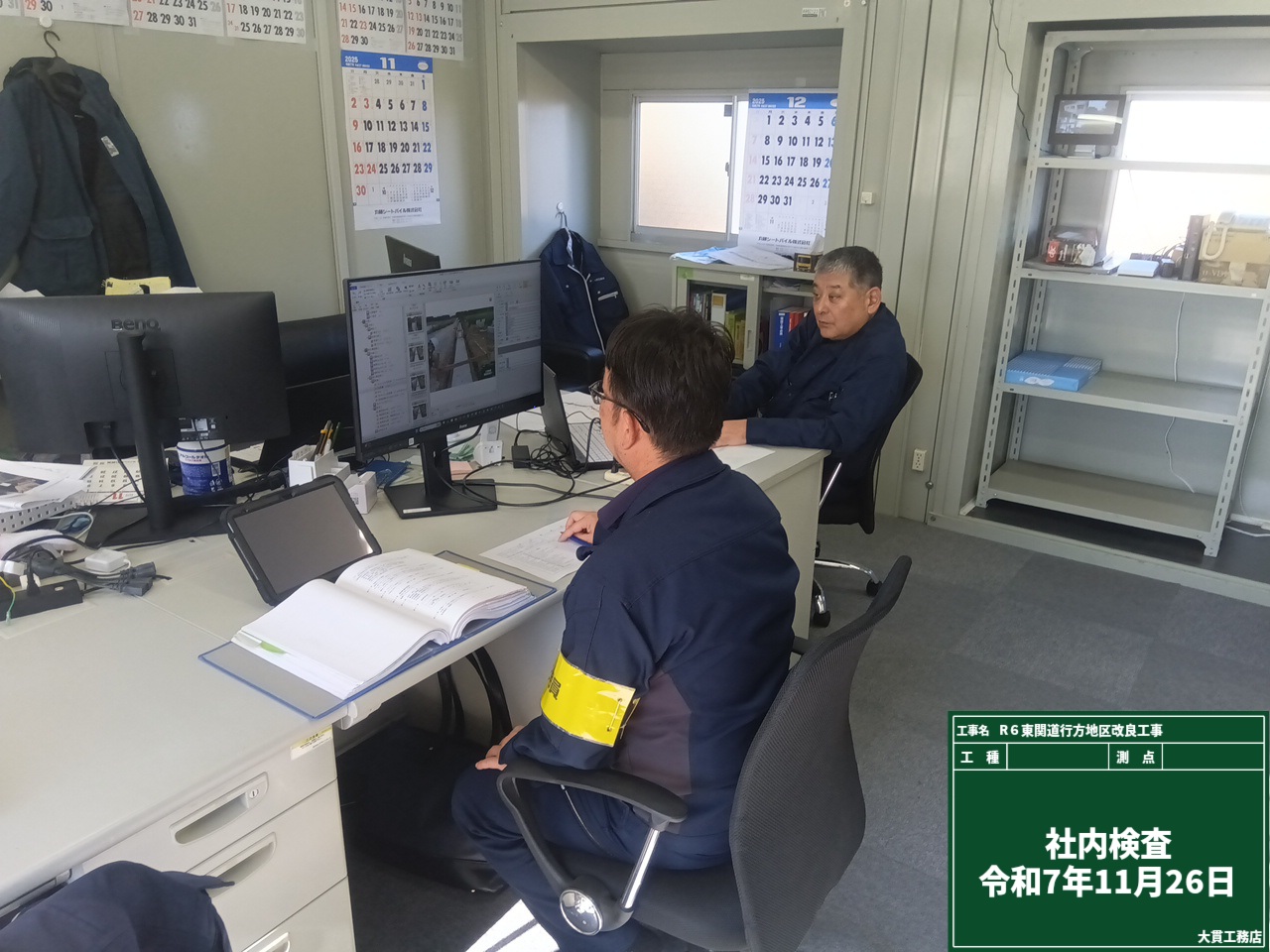 現場と事務所を遠隔臨場システムでつなぎ、材料検収を行いました。
