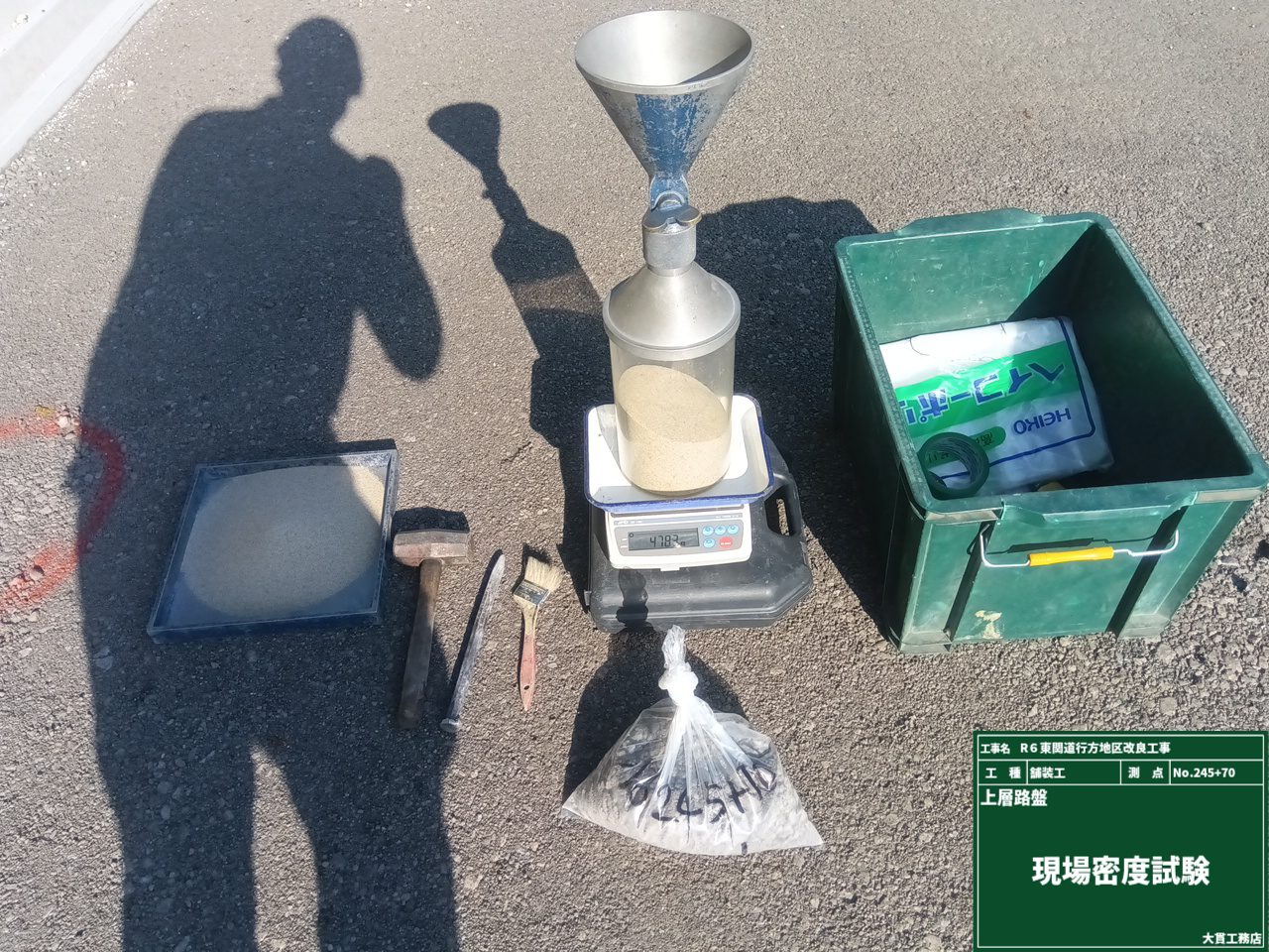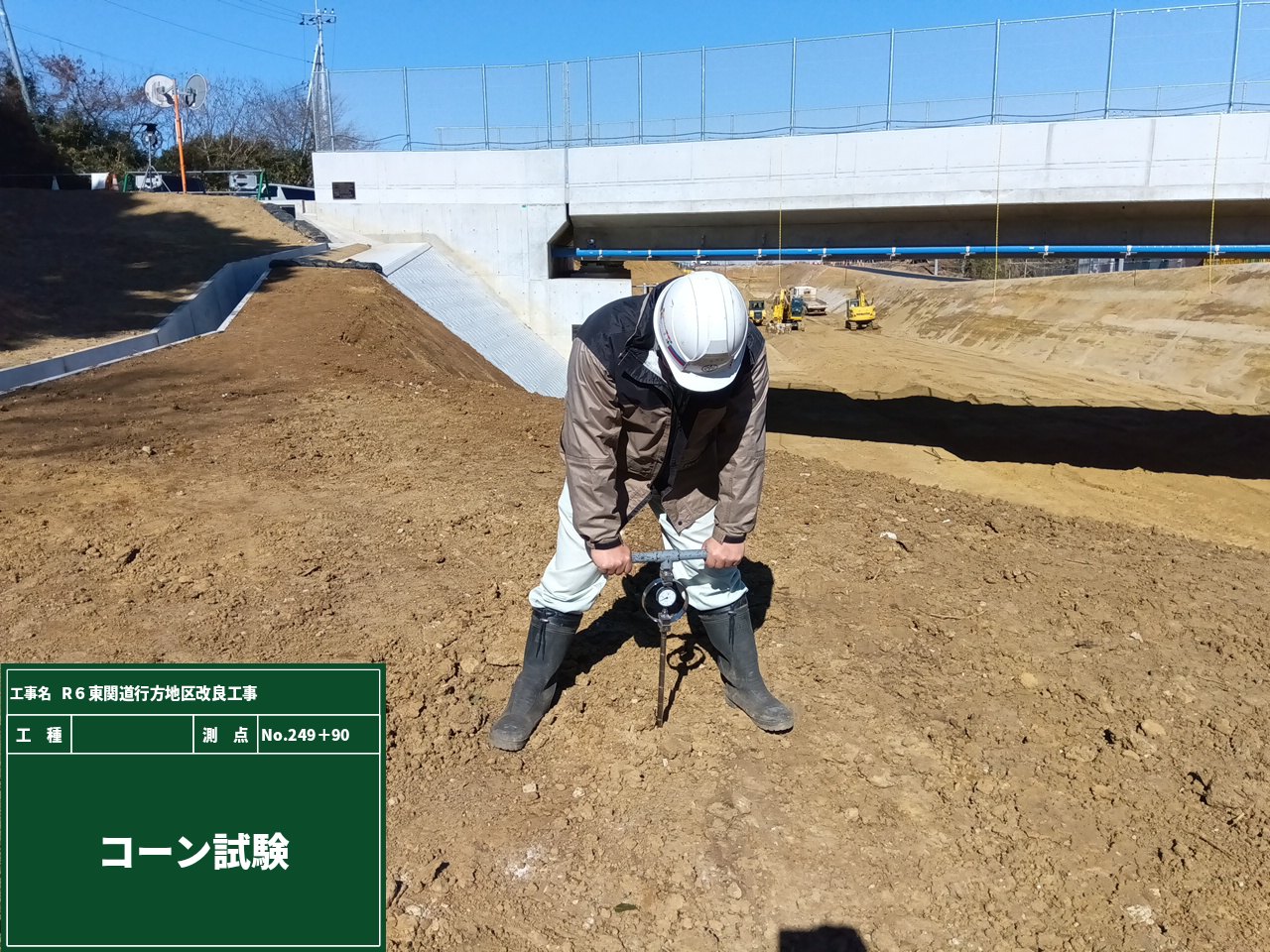 従来の盛土施工では、施工が終わってから「現場密度試験」を行い、品質を確認していました。