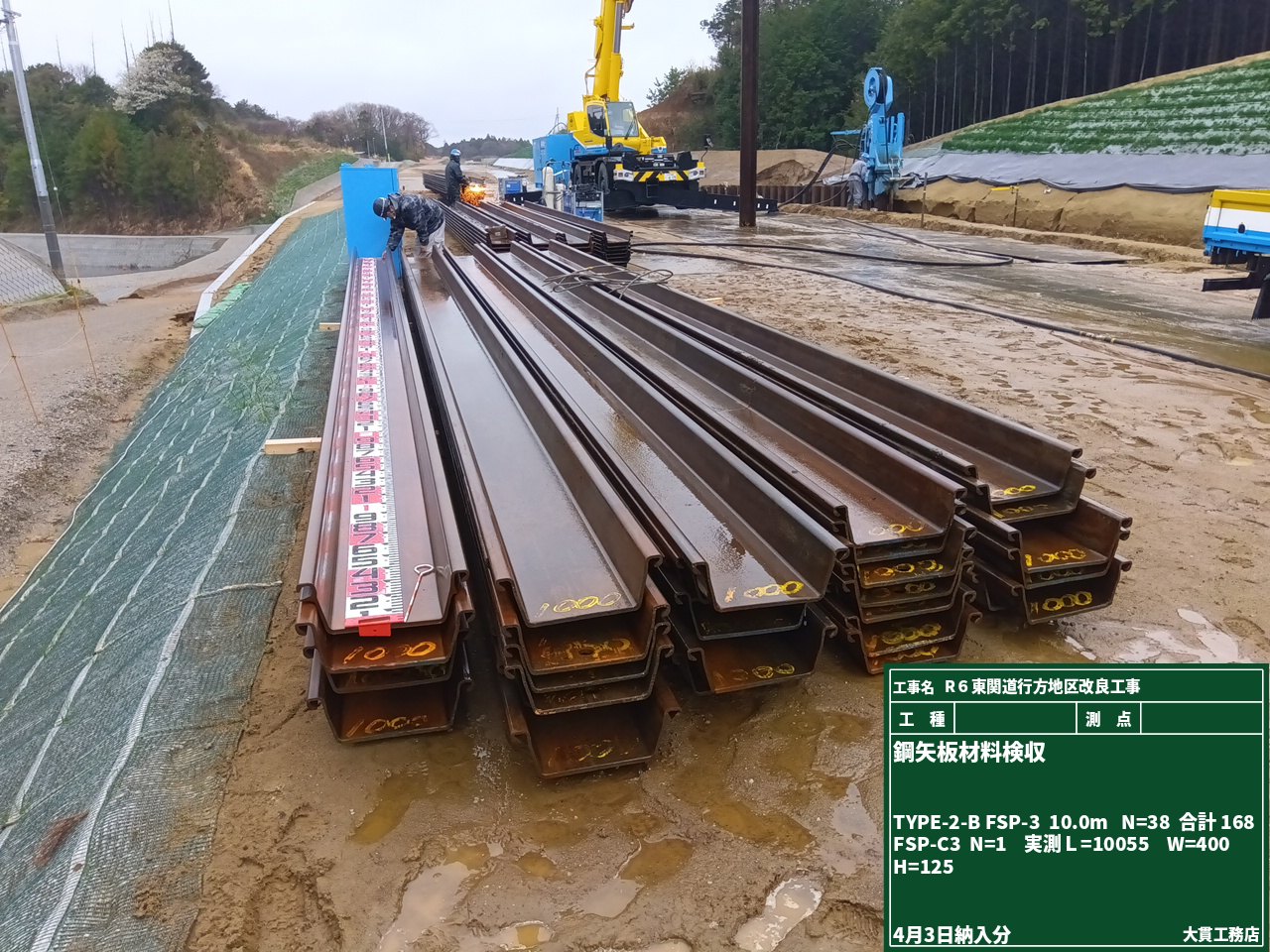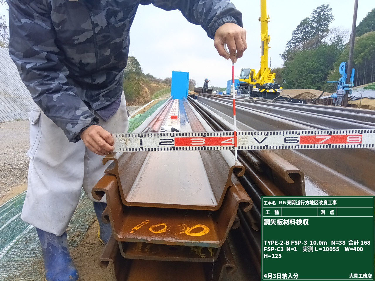 特に、鋼矢板などの不可視(ふかし)部分は、作業後見えなくなるのでしっかり写真を撮ります。