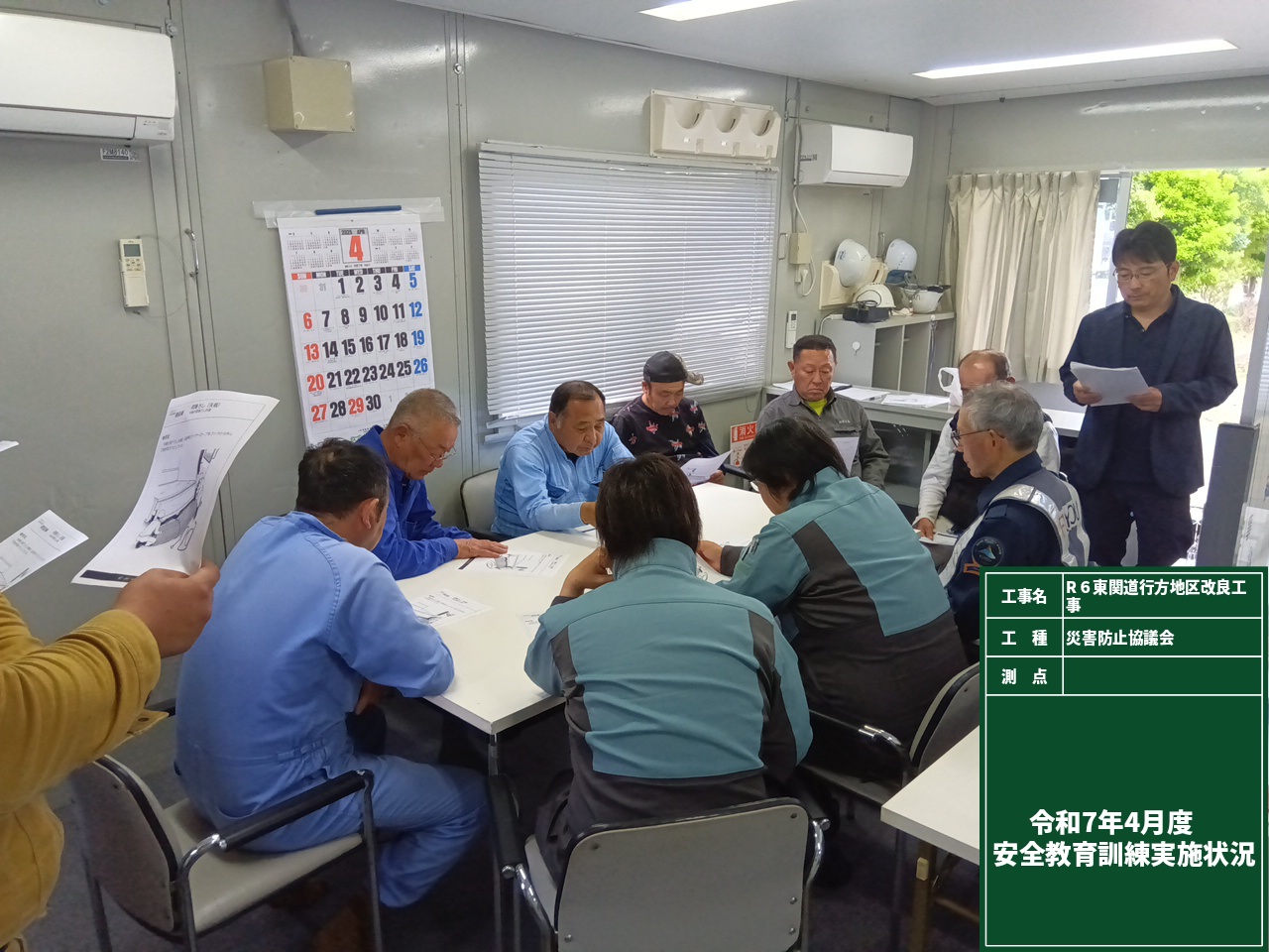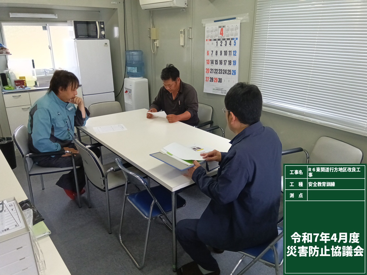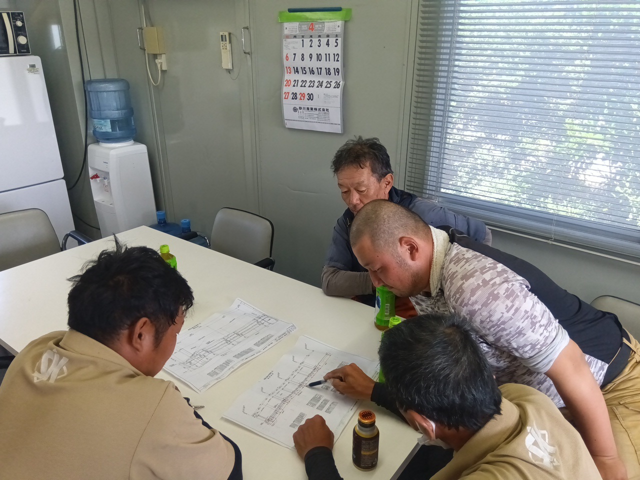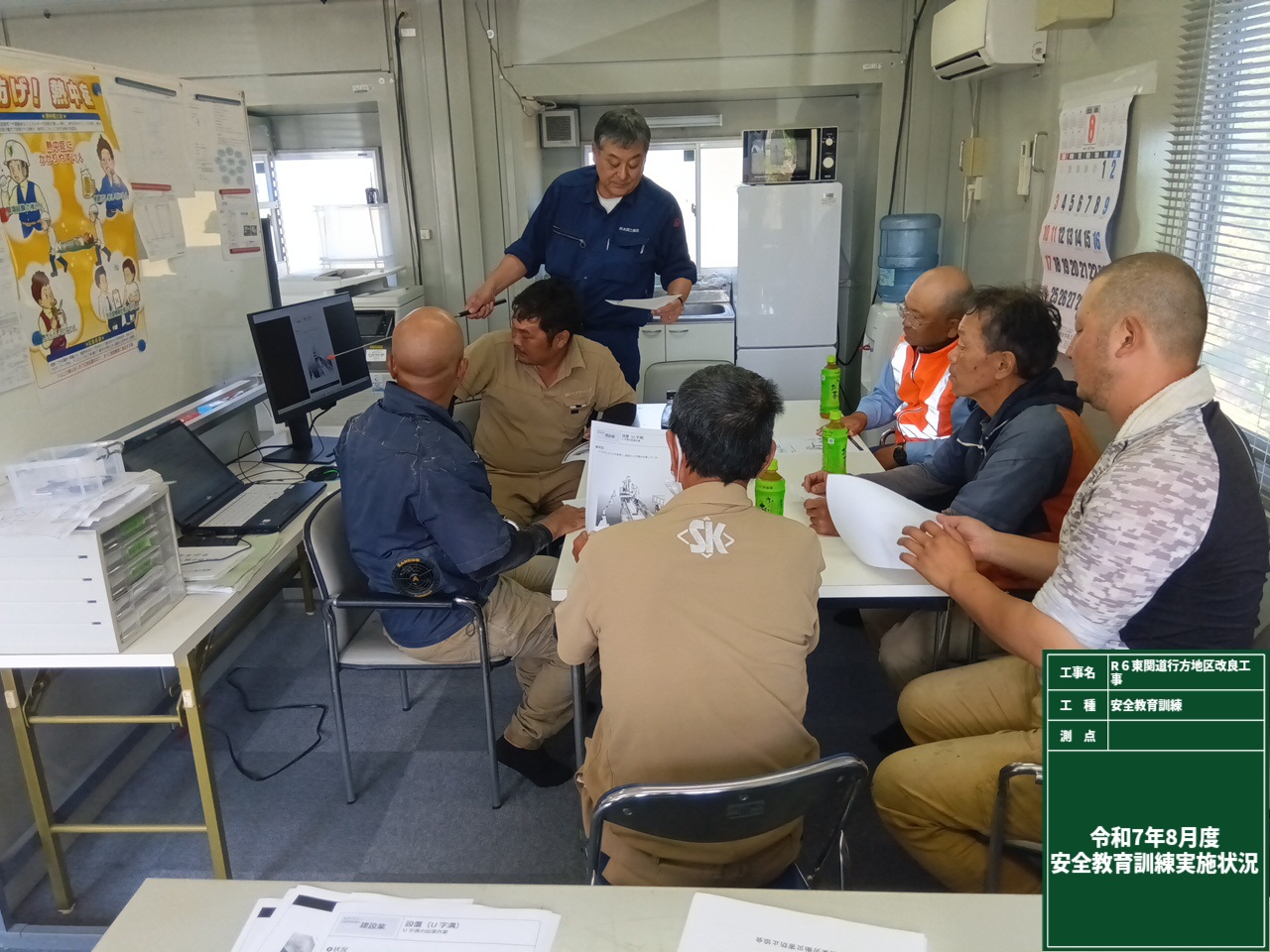 教育では、今後の工事予定を確認した上で、作業内容の説明・過去の事故事例の共有を行います。