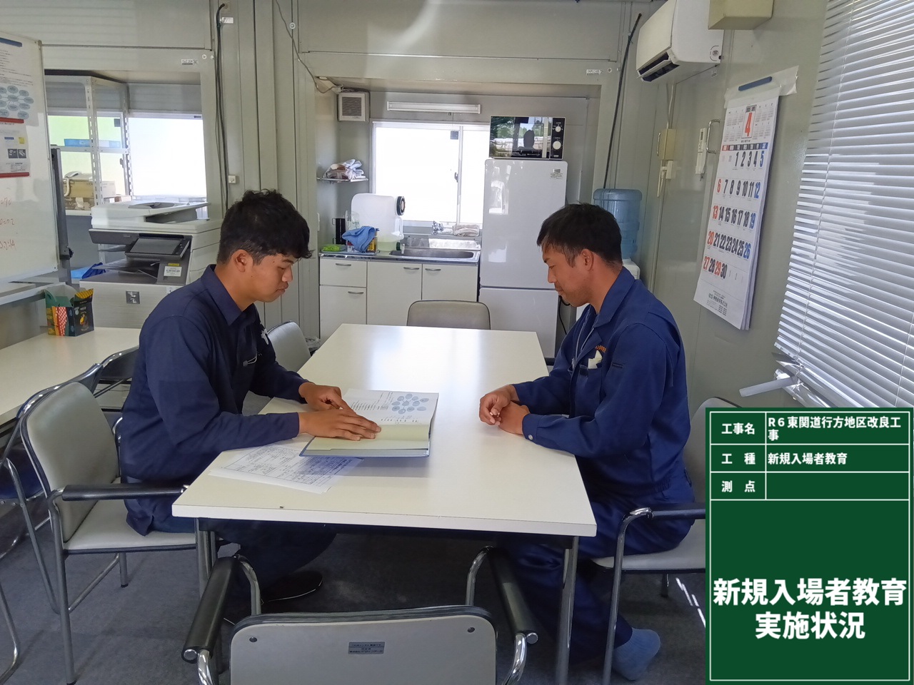 現場のルール・安全管理について説明する「新規入場者教育」を行います。