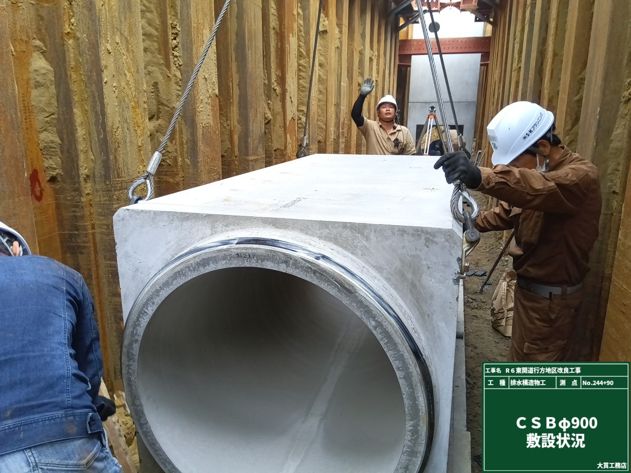 その次に下ろされるのは、マンホールの丸い穴へとつながるCSB(遠心ボックスカルバート)。