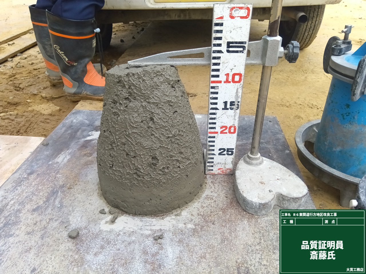 今回は、コンクリート打設前に行う「スランプ試験」です。
