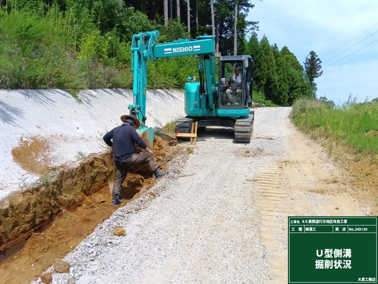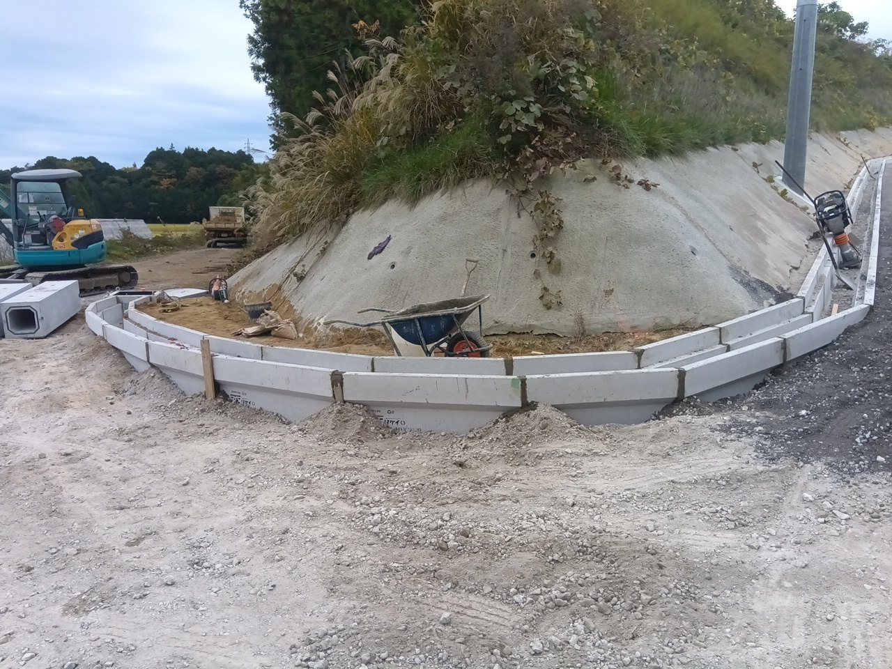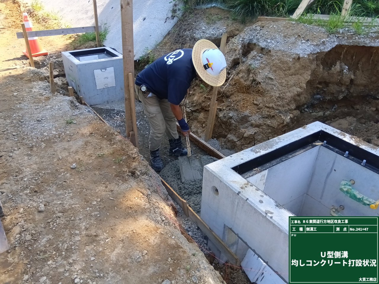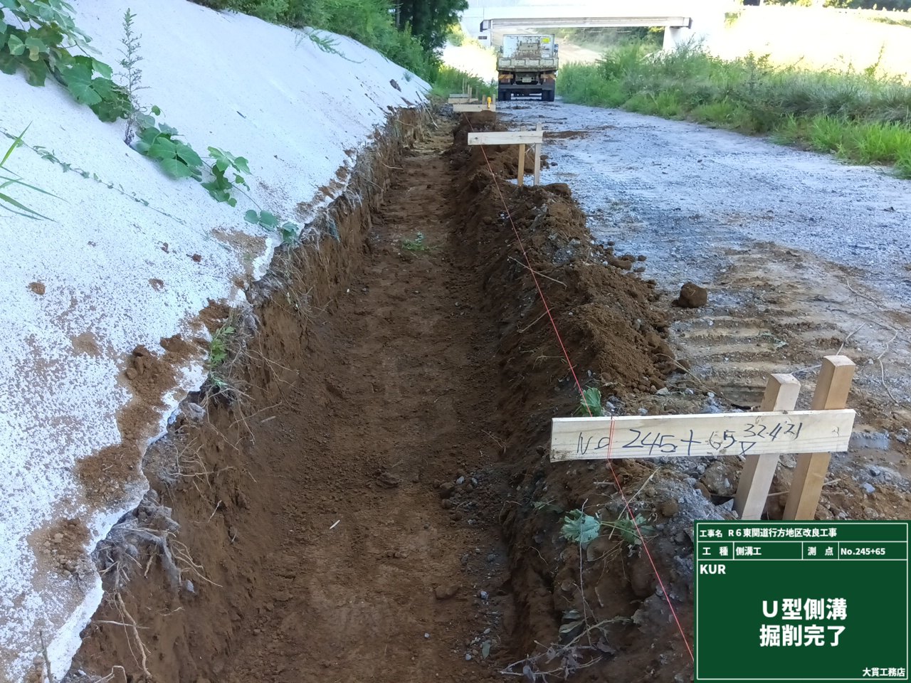 上段と下段、どちらもU型側溝を敷設している写真ですが、工程が違いますね!