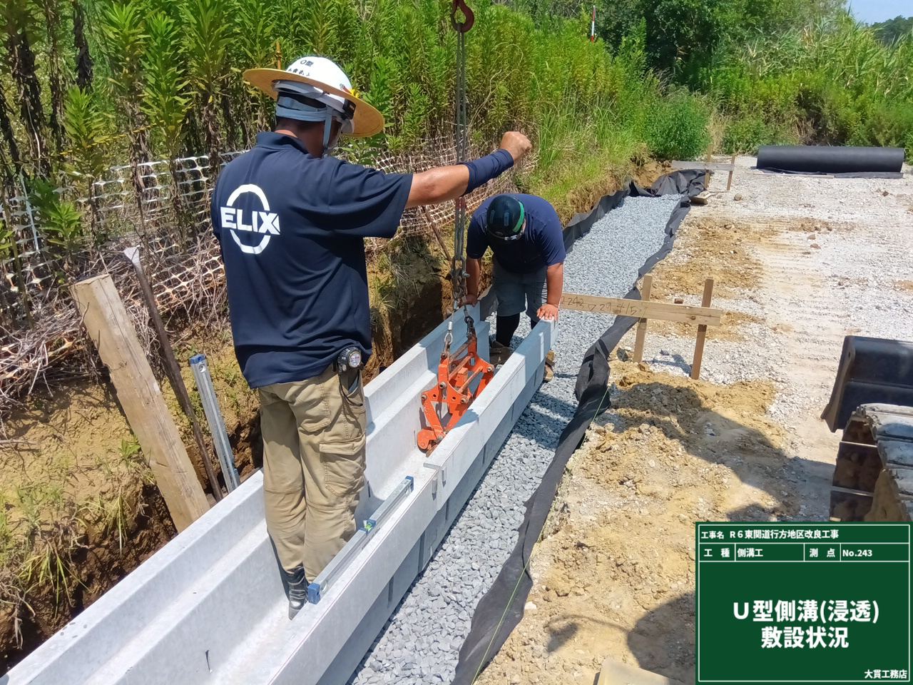 連日作業しているU型側溝に、ピタッと据付ていく予定です。