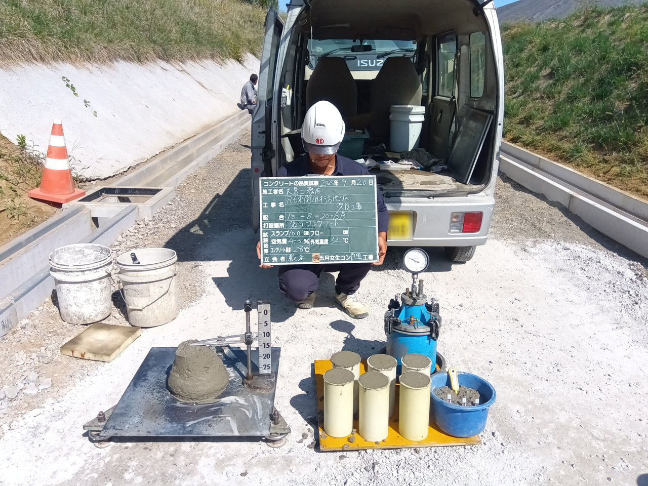 現場条件に合わせて、適正なスランプ値になるように配合を設計しています。