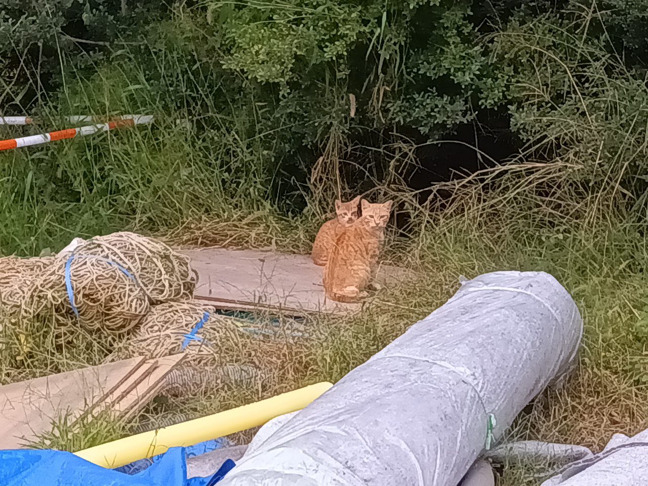 猫たちの安全にも気を配りつつ、今日も丁寧に路盤を仕上げていきます。