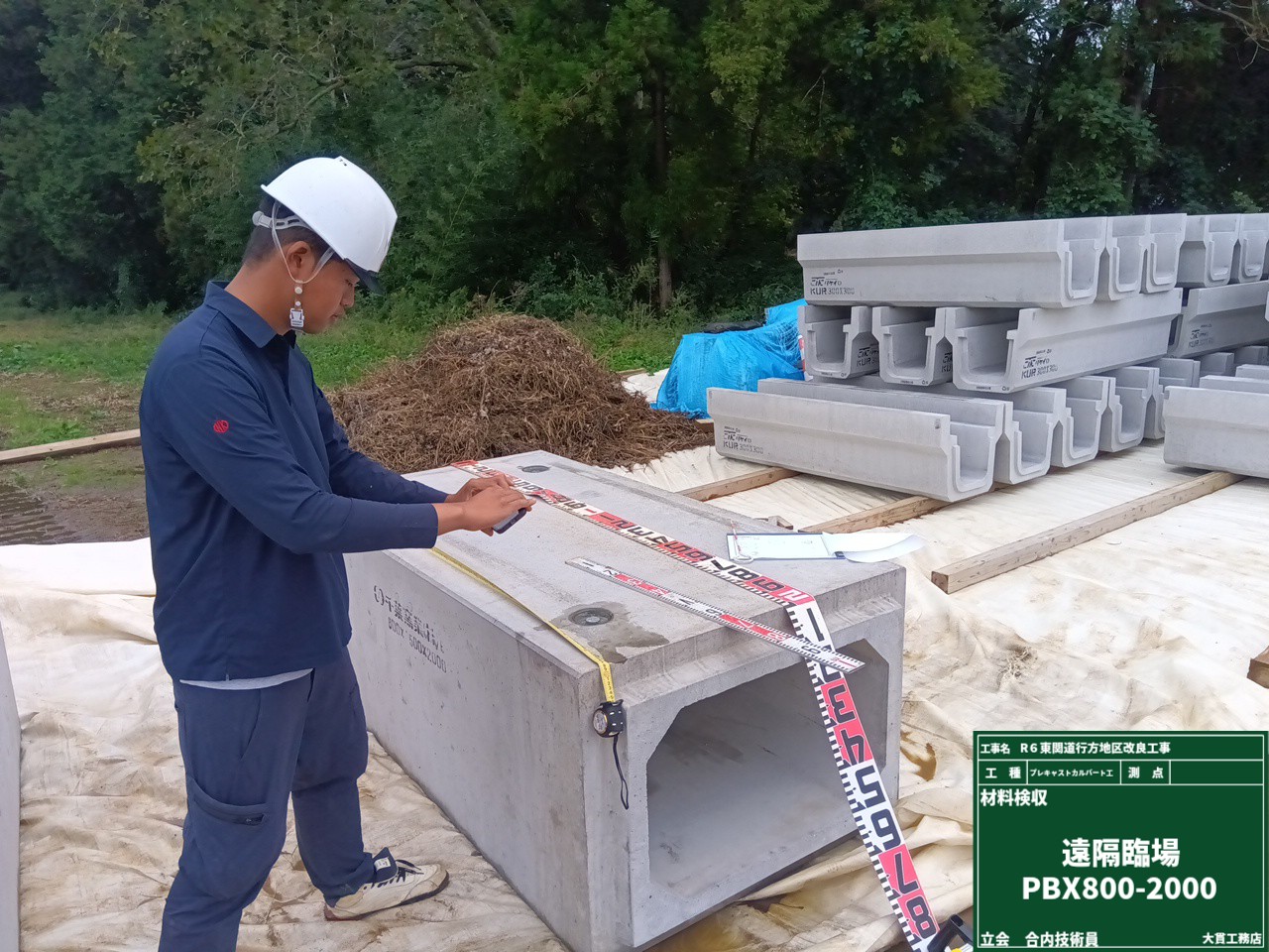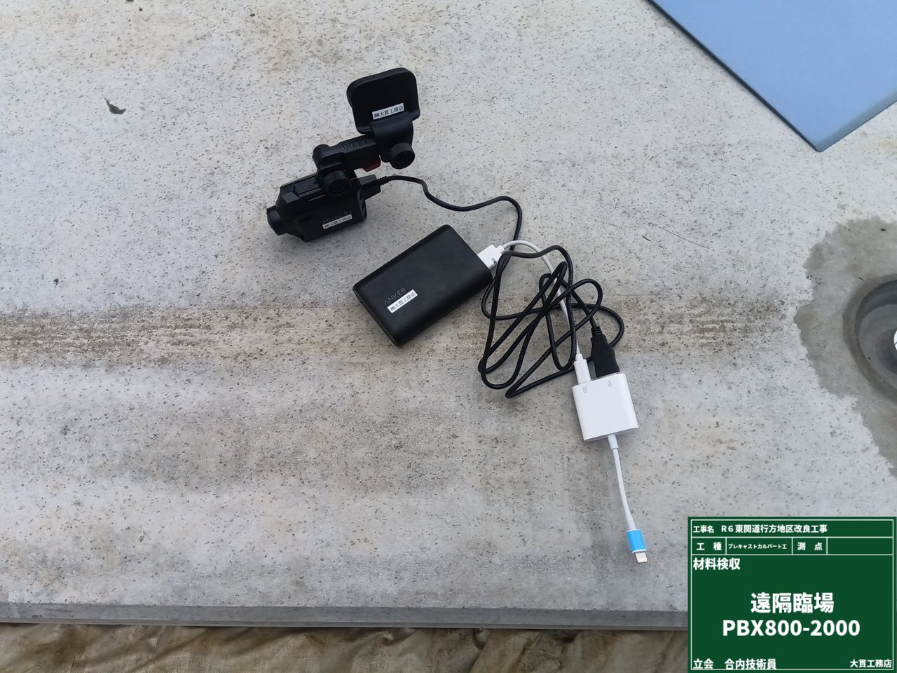 現場と事務所を遠隔臨場システムでつなぎ、材料検収を行いました。